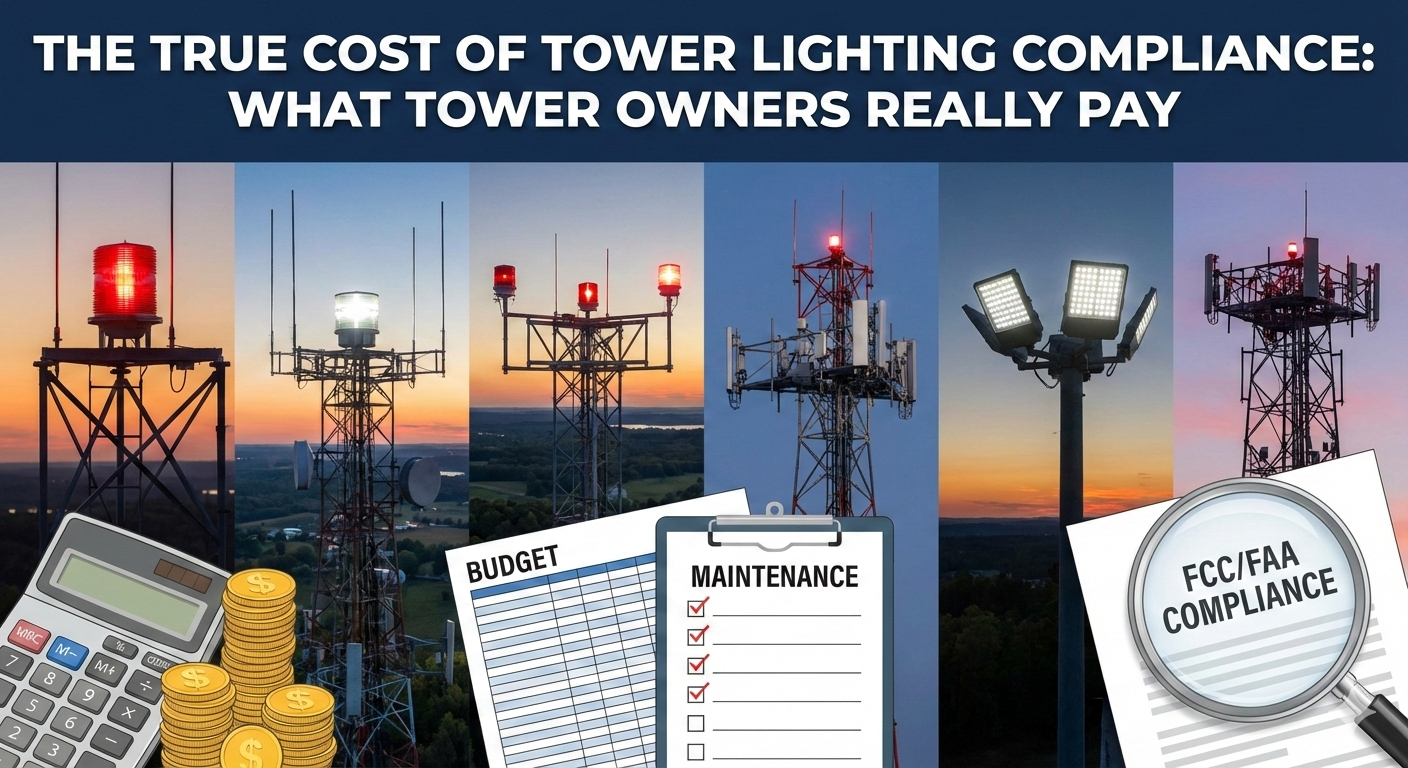 In this installment of our YouTube video series review, we'll cover the actual costs of ensuring your tower is lit correctly. Tower lighting is a critical part of aviation safety and federal compliance, but the true cost of tower ownership extends far beyond the obvious price of the lights themselves. To illustrate this, let’s break down the real monthly cost of operating a 300-foot painted FAA medium-intensity A1 tower using a legacy incandescent lighting system. To keep the analysis practical and budget-friendly, all costs are expressed on a monthly basis, which reflects how most operators track operational spending. Hard Costs: The Direct, Visible Expenses These are the line items that appear on invoices and budgets. 1. Lighting System Reserve • System purchase & installation: $17,980 • Depreciation: 12 years • Monthly cost: $125 2. Tower Painting Reserve • 300 ft painted tower • Cost: $40 per linear foot • Paint life: 7 years • Monthly cost: $140 3. Repairs & Compliance Documentation • One repair per year: $1,900 (parts + tower climb) • FAA paint card inspection & documentation: $233 annually • Monthly cost: $178 4. Quarterly On-Site Inspections • Required for compliance • Monthly cost: $89 5. Electrical Power • Legacy incandescent system • Average commercial electricity rates • Monthly cost: $60 6. Compliance Monitoring & Data • Monitoring unit installed: $1,900 • Depreciated over 7 years • Monthly service fee: $30 • Secure data plan: $10 • Monthly cost: $72 Total Hard Costs: $667 per Month This equals $8,004 per year for a single medium-intensity painted tower. Soft Costs: The Hidden Operational Burden Soft costs don’t show up on invoices, but they consume time, staff, and internal resources: • Coordinating tower climbs and repairs • Managing vendor schedules and contracts • Procurement and logistics • Site access and safety coordination • Documentation and recordkeeping • Internal compliance management These administrative burdens quietly inflate the real cost of tower ownership. Risk Costs: The Unpredictable Financial Exposure Even well-managed towers face uncontrollable risks: • Inflation: Rising labor, parts, and energy costs • Compliance risk: Missed inspections or documentation gaps • Capital shocks: Sudden lighting system replacements • Catastrophic events: Storm damage, equipment failures, accidents These risks can rapidly exceed annual budgets and disrupt operations. The Bottom Line: Ownership Is More Expensive Than It Looks Hard costs alone average $8,000 per year for a single FAA A1 medium-intensity painted tower. Once soft costs and risk exposure are included, the true financial burden is significantly higher. There Is a Smarter Way There is another model that can reduce your tower lighting costs by up to 50% while eliminating risk, compliance stress, and operational complexity. To learn more, explore our solution series or visit LumenServe.com to see how Tower Lighting as a Service® changes the economics of compliance. For more compliance guidance, check out our other educational series blog posts: 1. Tower Lighting Compliance Checklist: How to Stay FAA & FCC Compliant 2. What is a NOTAM? 3. Tower Lighting Inspections: FCC & FAA Requirements Every Tower Owner Must Know 4. Why Some Towers Rely on Paint Instead of Lights